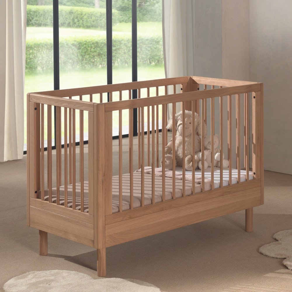 Son design épuré en chêne massif, avec des barreaux ronds, en fait un couchage à la fois robuste, sécurisé et intemporel.